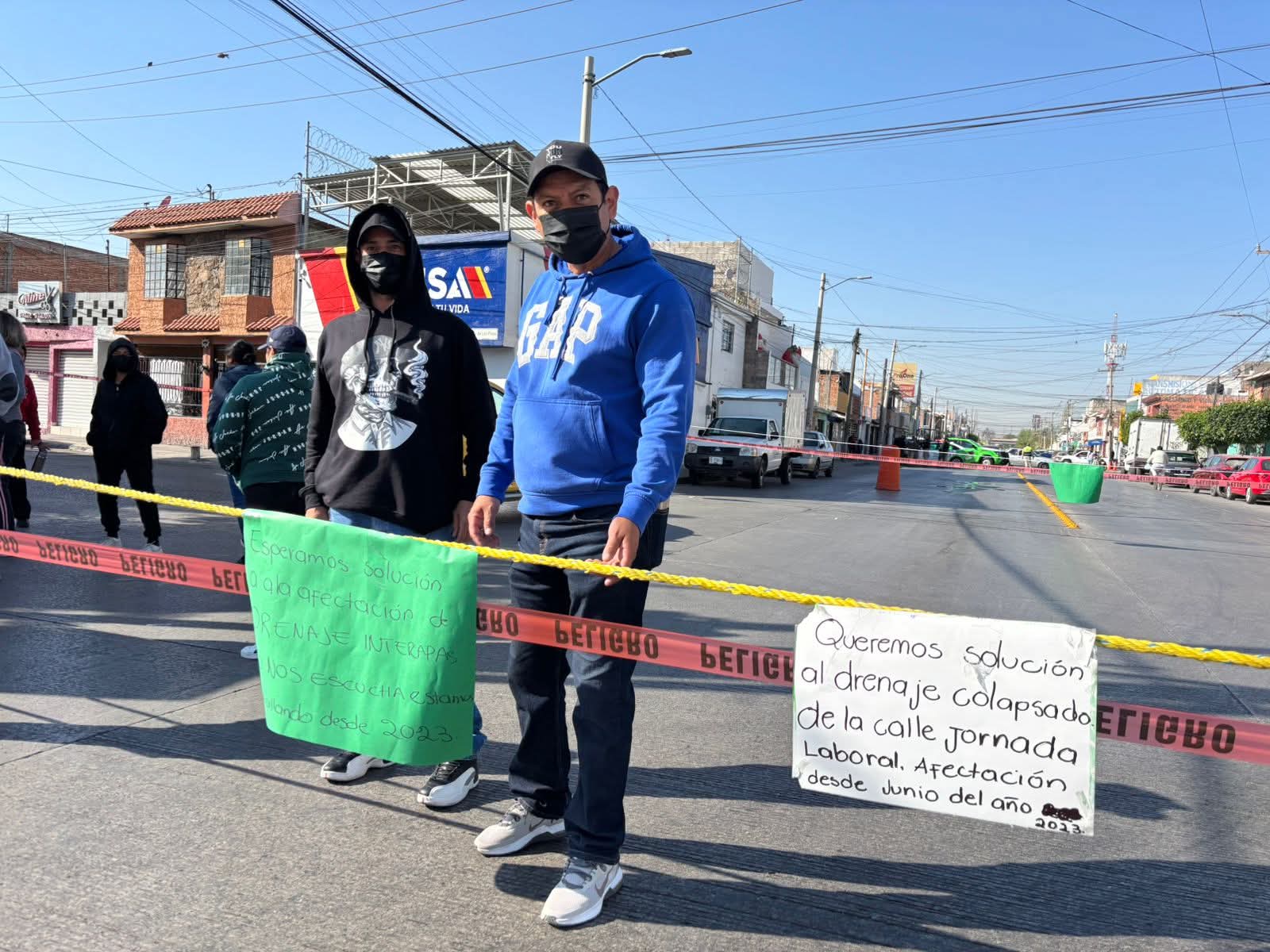 Vecinos de la colonia Azaleas de Soledad de Graciano Sánchez, cerraron calles en manifestación contra el organismo operador Interapas, por el colapso del drenaje, situación que han reportado desde el año 2023 sin solución, por lo que exigieron que sea arreglado, ya que las aguas negras generan olores fétidos y condiciones insalubres para niñas y niños y las familias de la zona.
