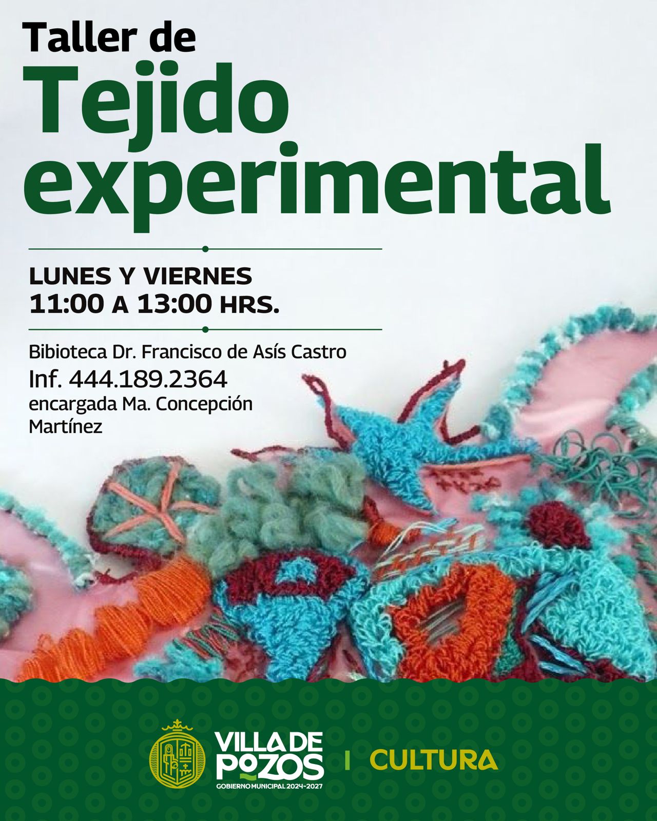 Con el propósito de reforzar las habilidades artísticas, culturales y de bienestar físico de la población, el Gobierno Municipal de Villa de Pozos, mediante la Dirección de Cultura, amplió su oferta de talleres con la incorporación de cuatro nuevas actividades: Ballet Folklórico, Tejido, Iniciación Musical y Tejido Experimental, brindando más opciones de aprendizaje accesibles para la comunidad.