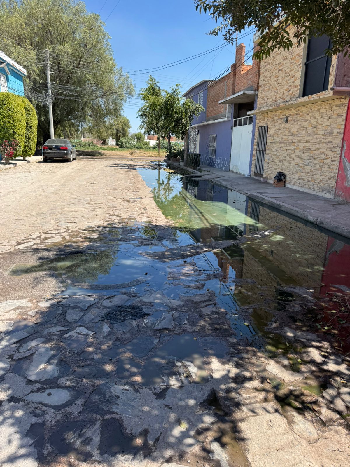 Habitantes de la zona denunciaron la presencia de una fuga de aguas negras que, de acuerdo con su testimonio, lleva desde agosto activa en la calle Nogales, en la colonia las Flores, en Soledad de Graciano Sánchez