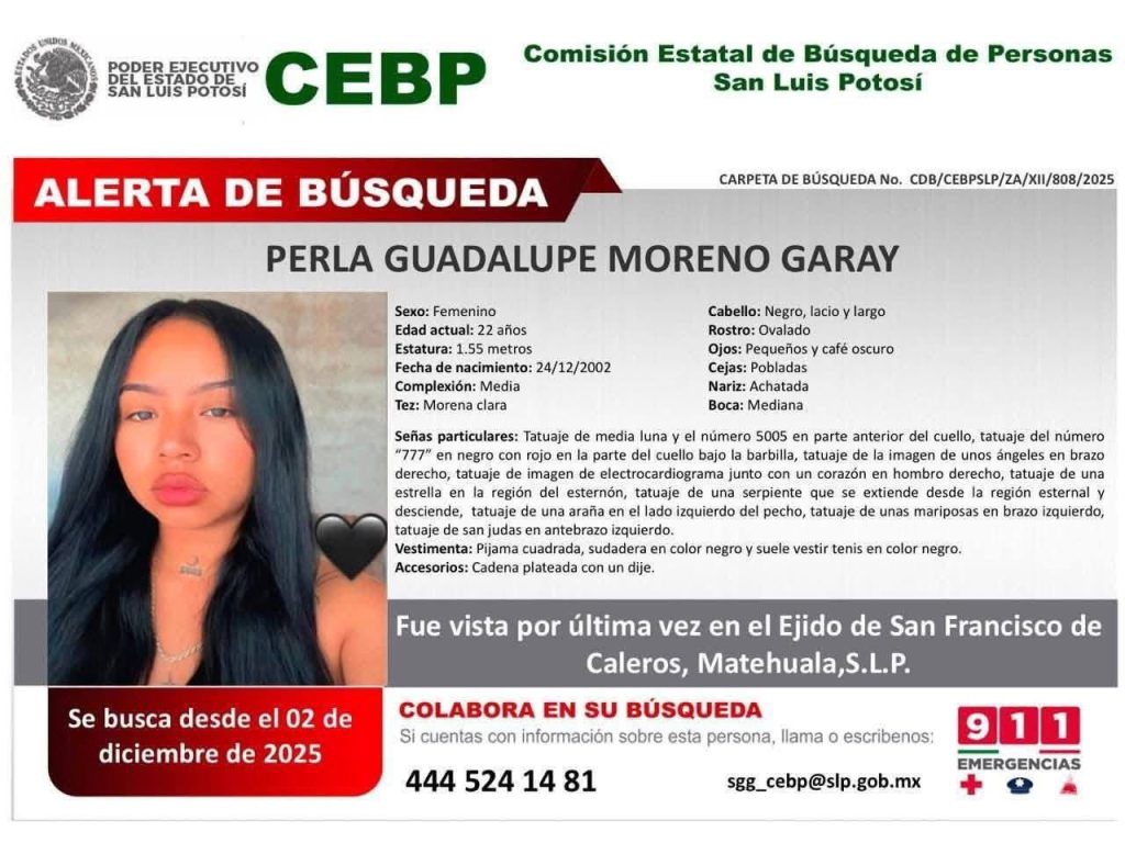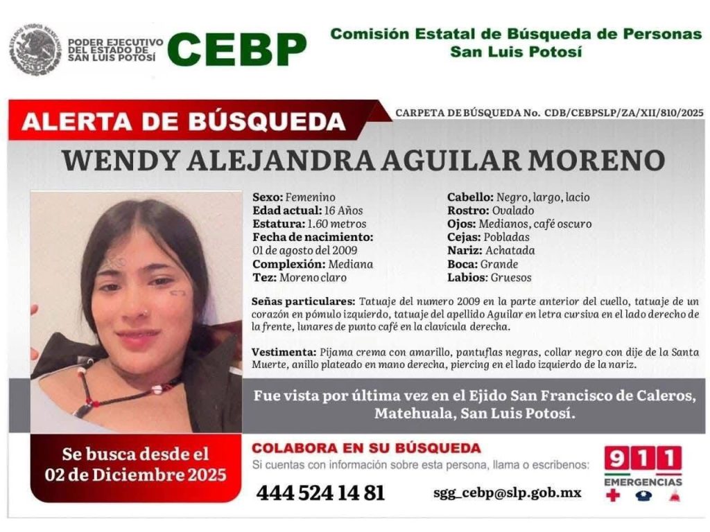 Según los datos disponibles, las jóvenes fueron vistas por última ocasión en el Ejido San Francisco de Caleros, en el municipio de Matehuala, San Luis Potosí.