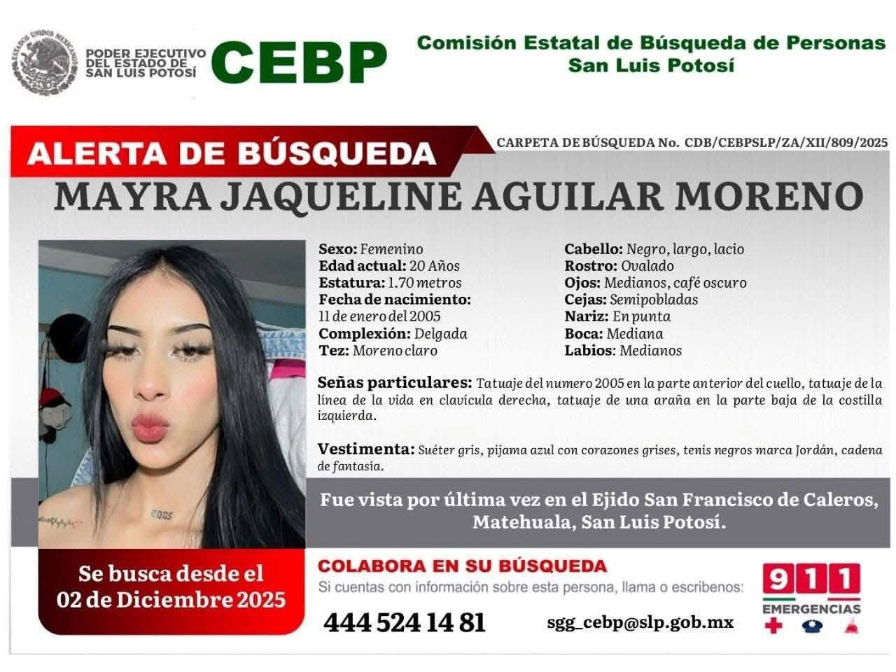 Familiares y personas cercanas solicitan el respaldo de la ciudadanía para dar con el paradero de Perla Guadalupe Moreno Garay, Wendy Alejandra Aguilar Moreno y Mayra Jaqueline Aguilar Moreno, quienes permanecen en calidad de desaparecidas desde el pasado 2 de diciembre de 2025.
